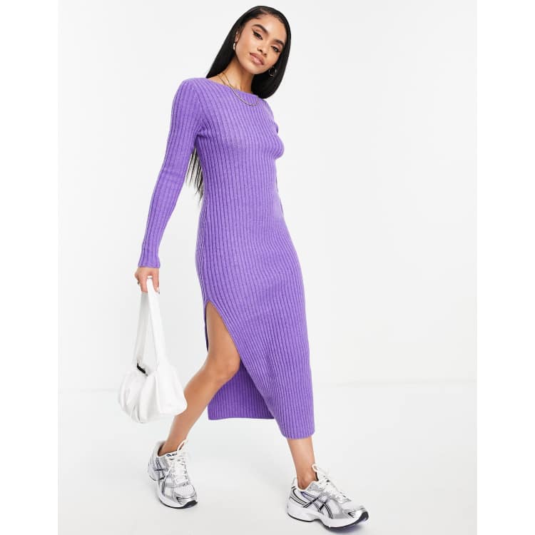 Asos Design Knitted Maxi Dress With Asymmetric Lace Up Back Detail In Purple Asos